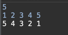 package week2day1; import java.util.Scanner; public class PrintBackward { public static void main(String[] args) { Scanner sc = new Scanner(System.in); int n = sc.nextInt(); // n 값 입력 int[] array = new int[1010]; // 배열 선언 for(int i=0; i<n; i++) { // 배열 입력 array[i] = sc.nextInt(); } for(int i=n-1; i>=0; i--) { // 거꾸로 출력 System.out.print(array[i] + " "); } } }